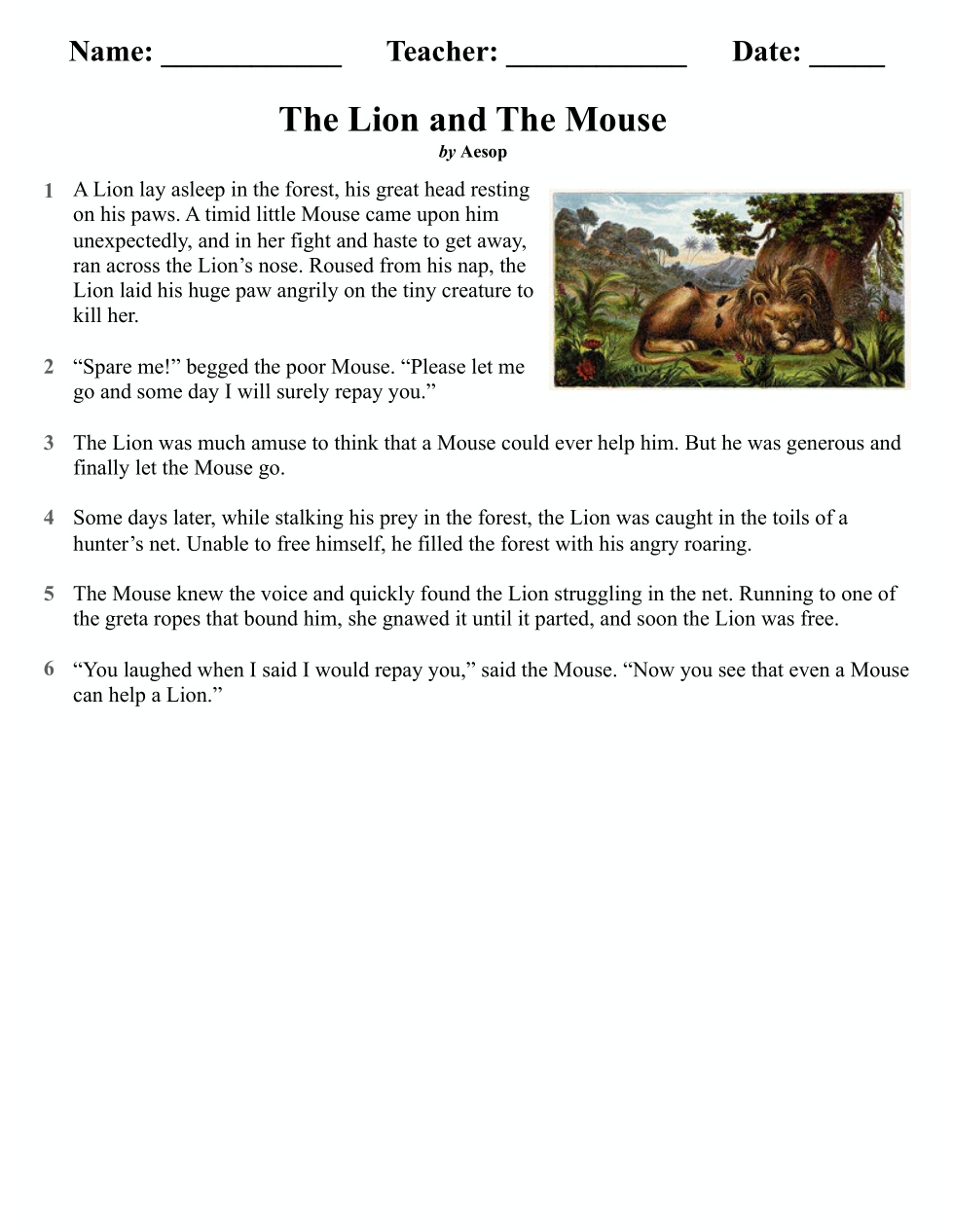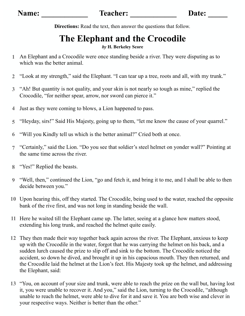 You have read “The Elephant and the Crocodile” and “The Lion and The Mouse.” Write a short essay comparing the similarities of the themes from each fable. Support your response with details from both passages.