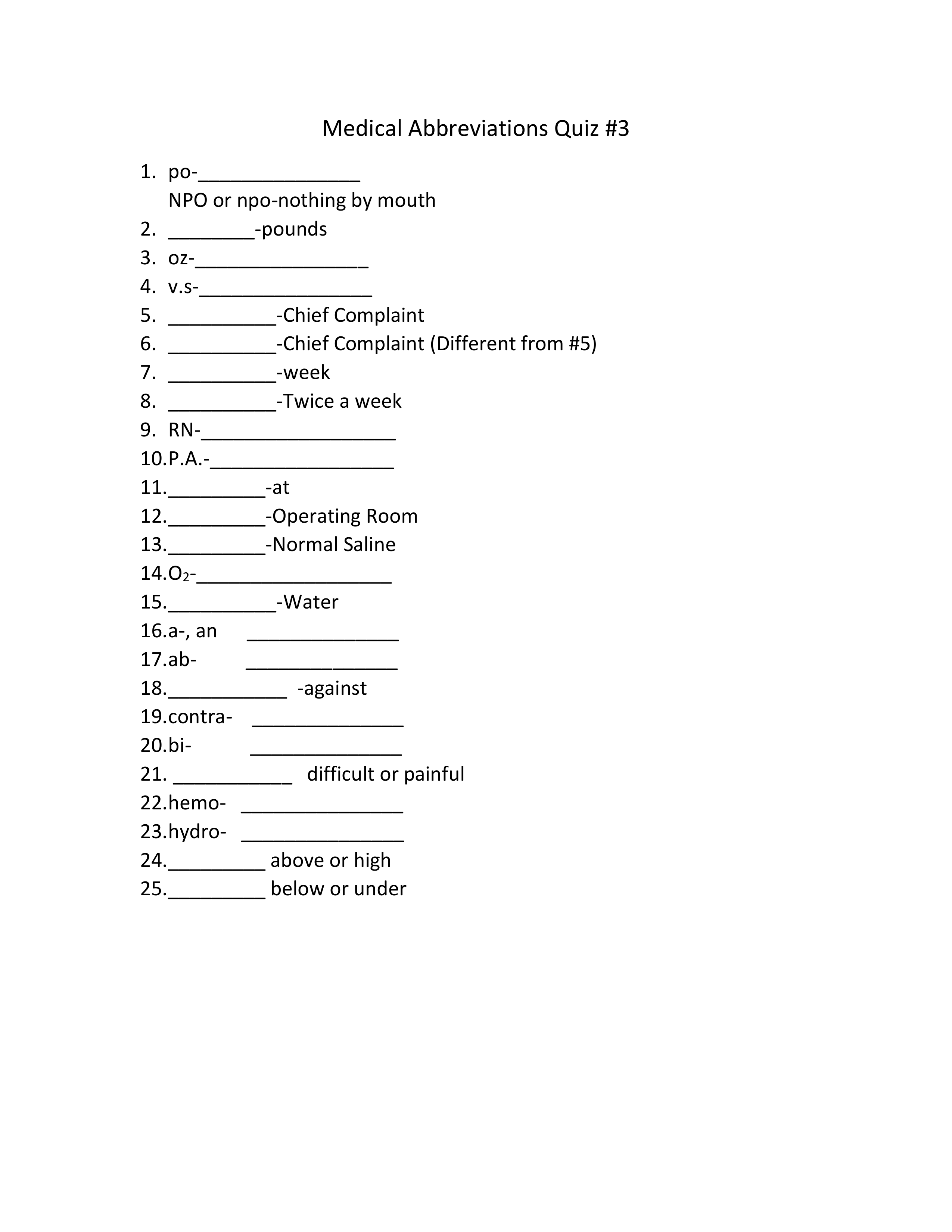 Medical Abbreviations Quiz #3