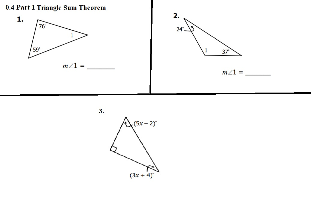 Use the Triangle Sum Theorem to find the measure of angle 1.