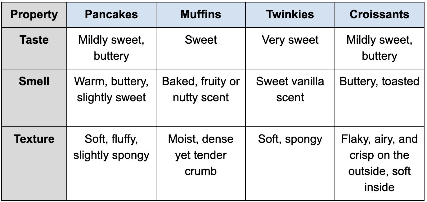 Properties of Substance 3:Taste - Mildly sweet, butterySmell - Buttery, toastedTexture - Flaky, airy, and crisp on the outside, soft inside