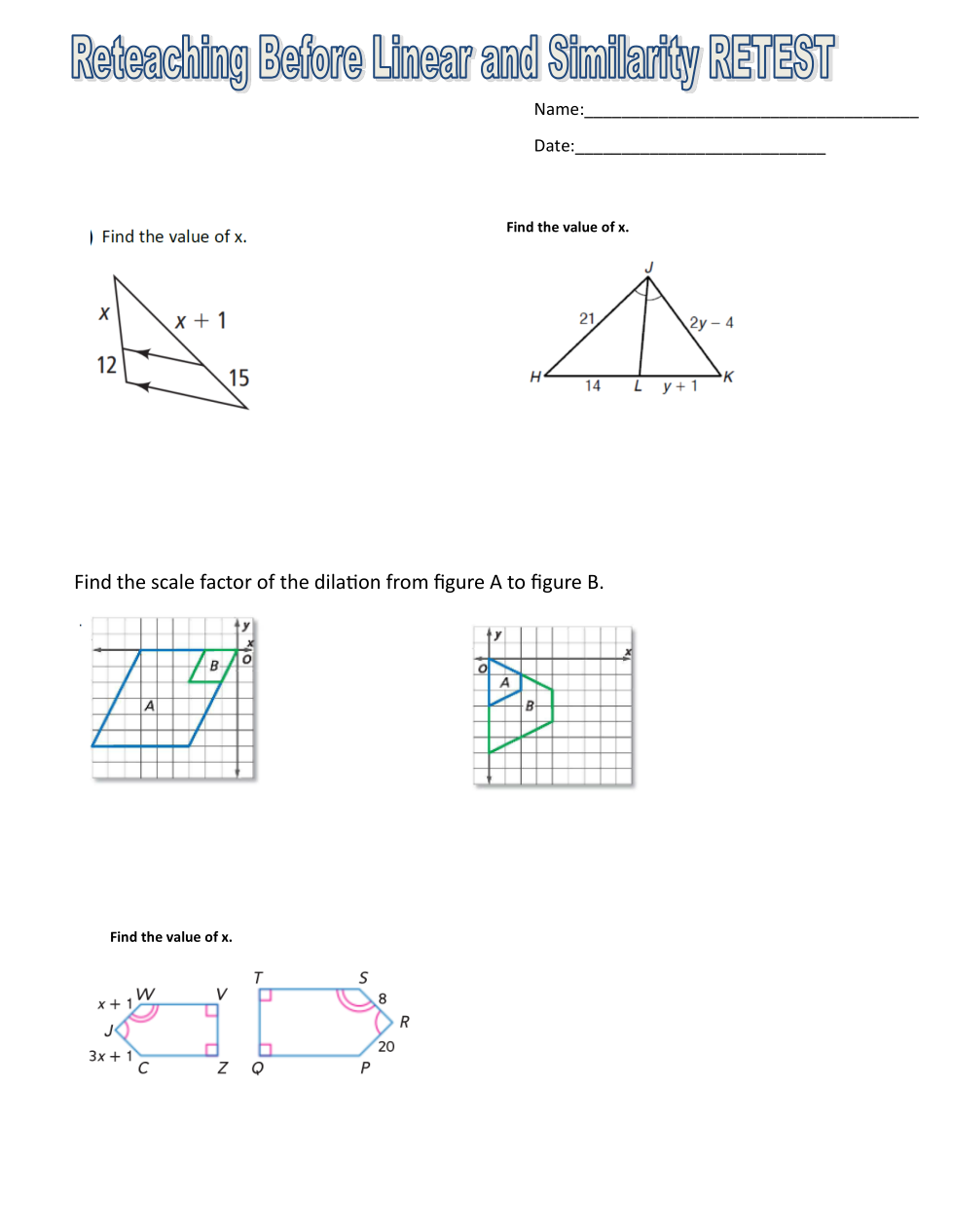 What is the scale factor of the dilation from A to B?