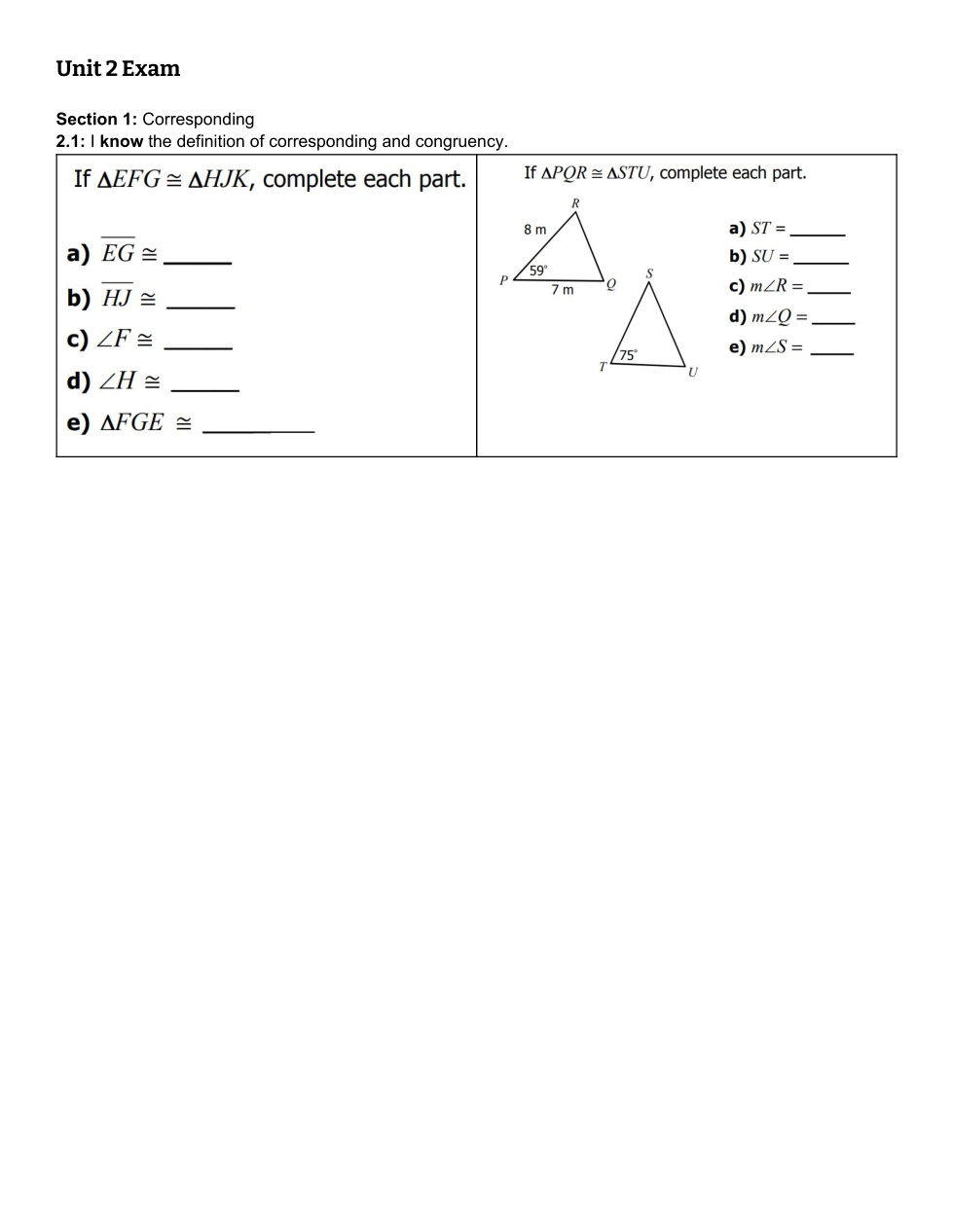Unit 2 Honors Exam