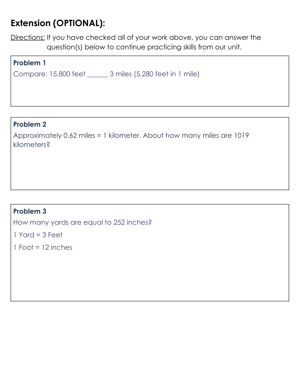 Compare: 15,800 feet ______ miles (5,280 feet in 1 mile)