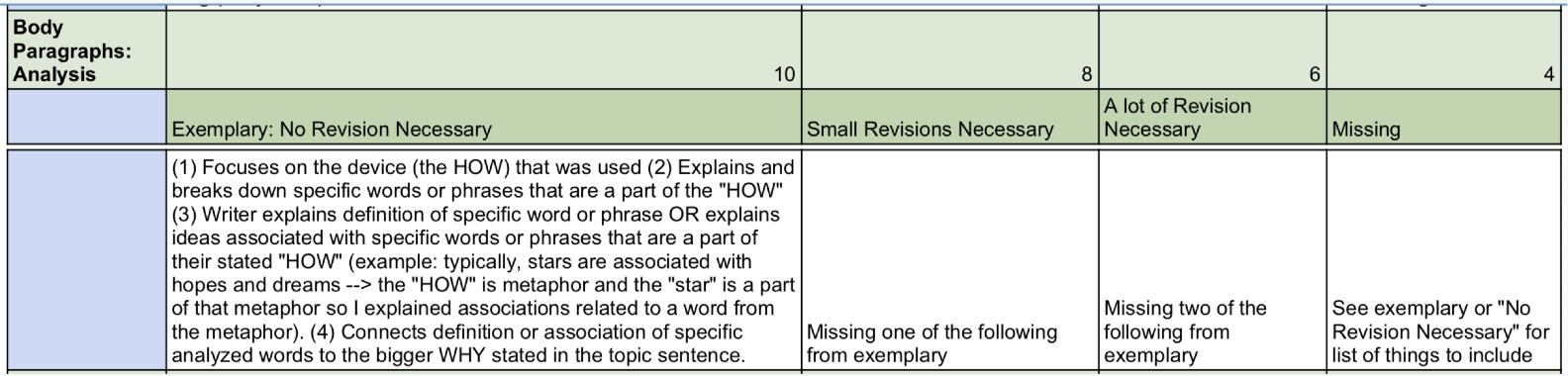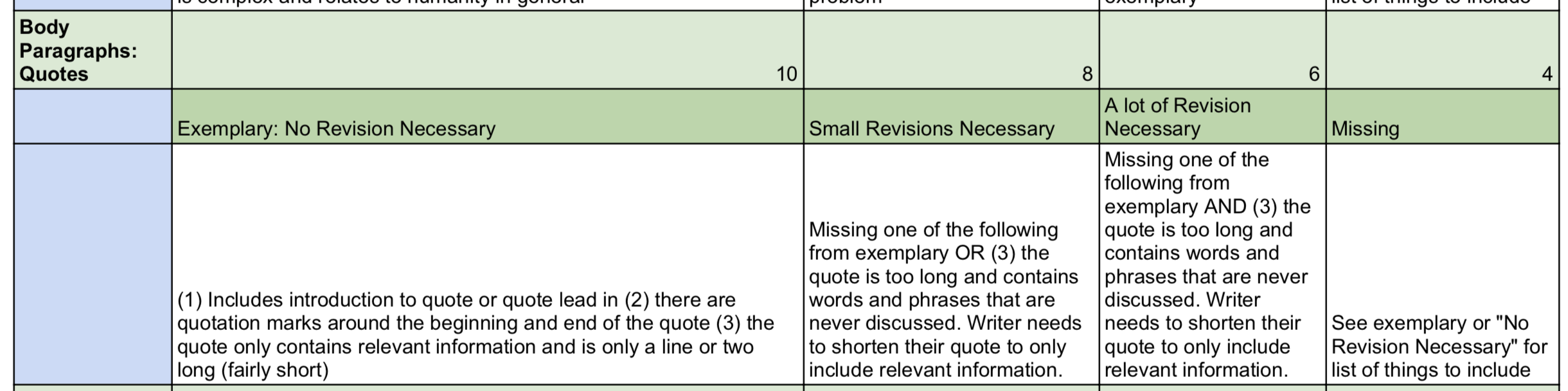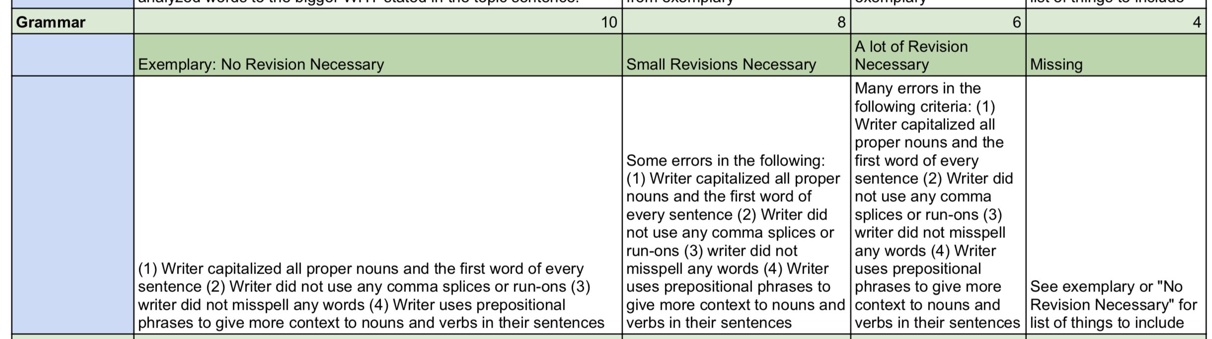 Copy and paste the exemplary requirements for grammar (make sure to read them to avoid these mistakes as you will be held accountable to them)