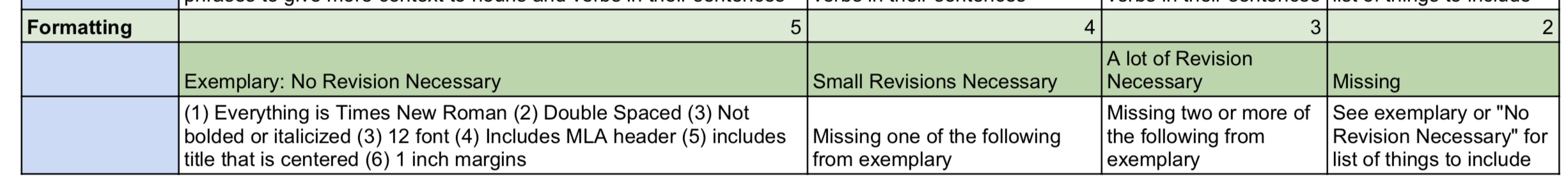 Copy and paste the exemplary requirements for Fomratting (make sure to read them to avoid these mistakes as you will be held accountable to them)