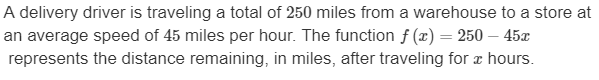 Wendy leaves Sacramento and heads to San Jose. She averages 50 mi/h on the 120-trip. Which equation describes Wendy's distance (d) from San Jose in hours (h) after she leaves Sacramento.
