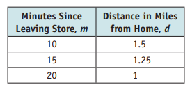 Write an equation that represents Holly's walk home that relates distance (d) to the number of minutes (m).