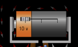 Look at the two diagrams below that show when the battery at 10V and is facing two different directions.