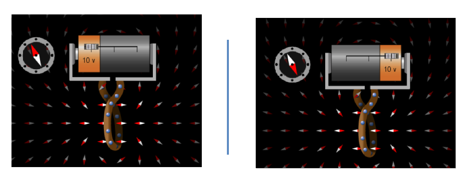 This creates a magnetic field! (Shown by the red and white "needles" all around the screen)