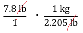 Example 2: A new baby weighs 7.8 lb, What is it’s mass in kilograms?