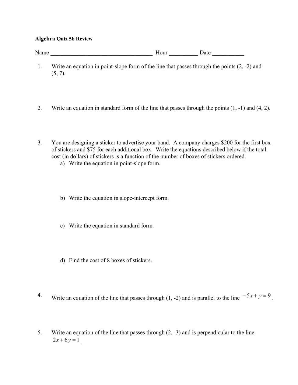write your equation in slope-intercept form (no spaces, use x and y as variables)