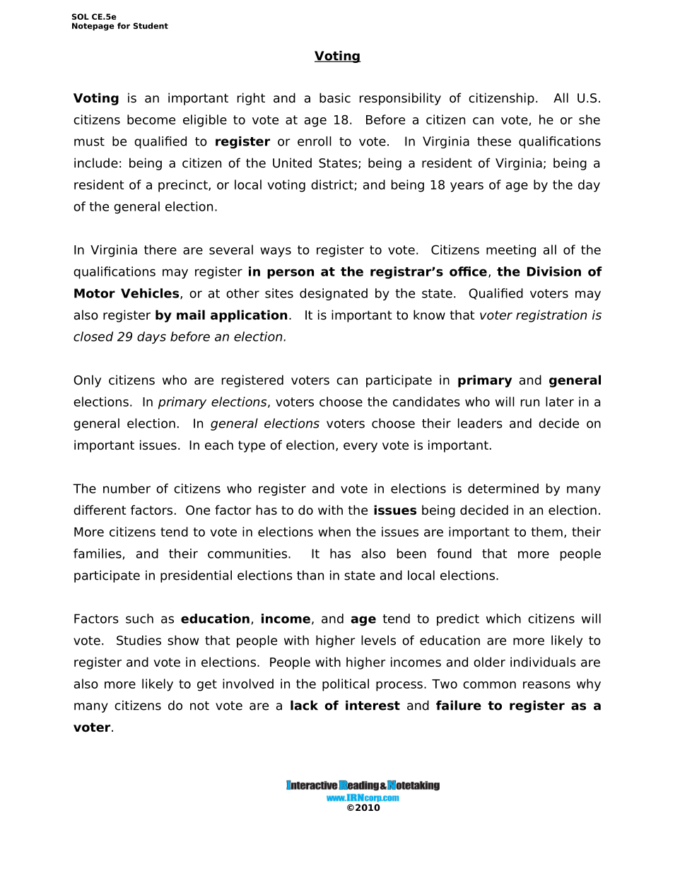 - Paragraph 1-#2: What does a citizen have to do before he or she can vote?