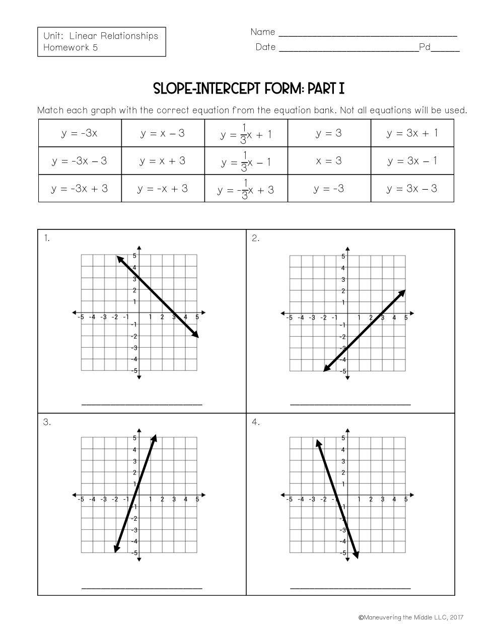 Unit 5: Day 5: SLOPE-INTERCEPT FORM: PART I