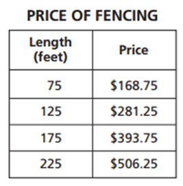 The table shown below was posted on the wall at Andy’s Hardware to show the price of varying lengths of chain-link fencing.