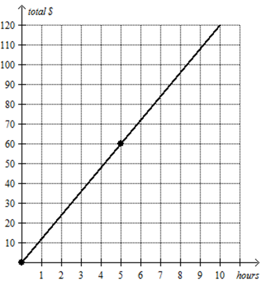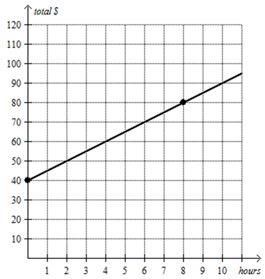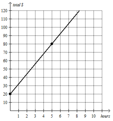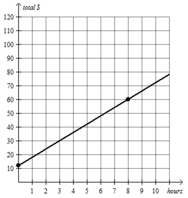 The Perry family joined a babysitting service. The service charges an initial flat fee for their one-time membership charge and an additional $12 per hour for each job. Which graph could represent the relationship between the hours of babysitting and total amount paid for the Perry family?