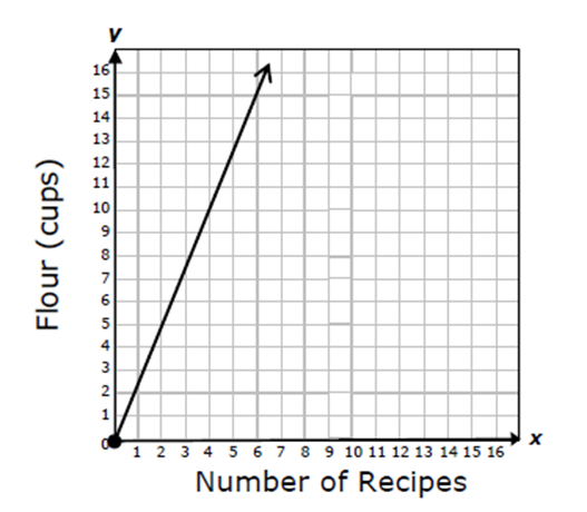 The graph below shows the relationship between the number of brownie recipes and the number of cups of flour required.