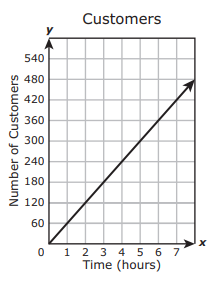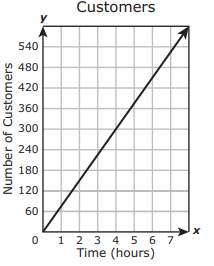 At a restaurant 600 customers were served during a 10-hour period of time. Which graph has a slope that best represents the number of customers that were served per hour at this restaurant?