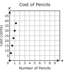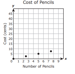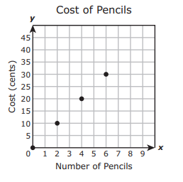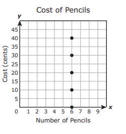 The cost of 6 pencils at a store is 30 cents. Each pencil has the same cost. Which graph has a slope that best represents the cost of each pencil at this store?