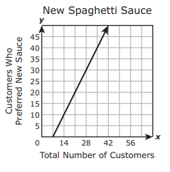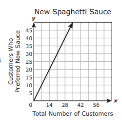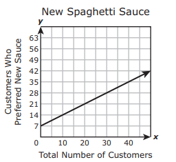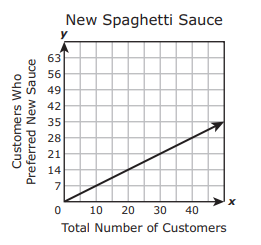 A survey of customers at a restaurant revealed that 7 out of 10 customers preferred the restaurant’s new spaghetti sauce. Which graph shows the relationship between y, the number of customers who preferred the new spaghetti sauce, and x, the total number of customers?