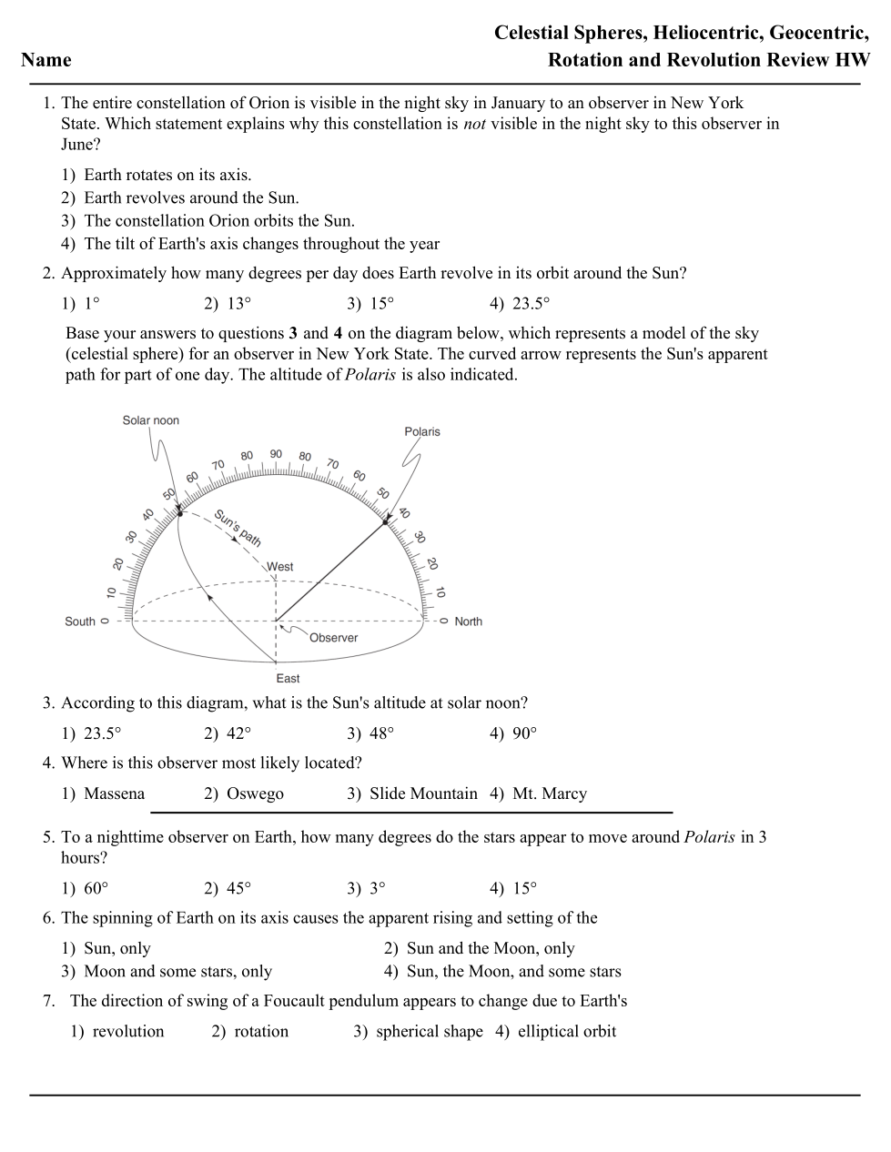 05 - HW Celestial Spheres, Heliocentric, Geocentric, Rotation and Revolution Review