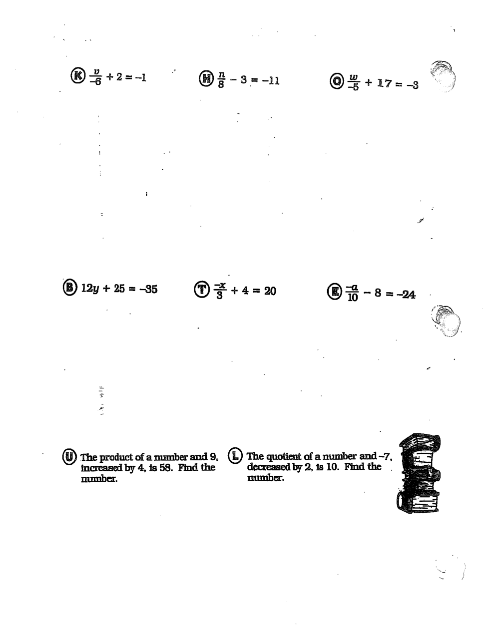 Write an action equation to represent the algebraic sentence, use n as your variable.