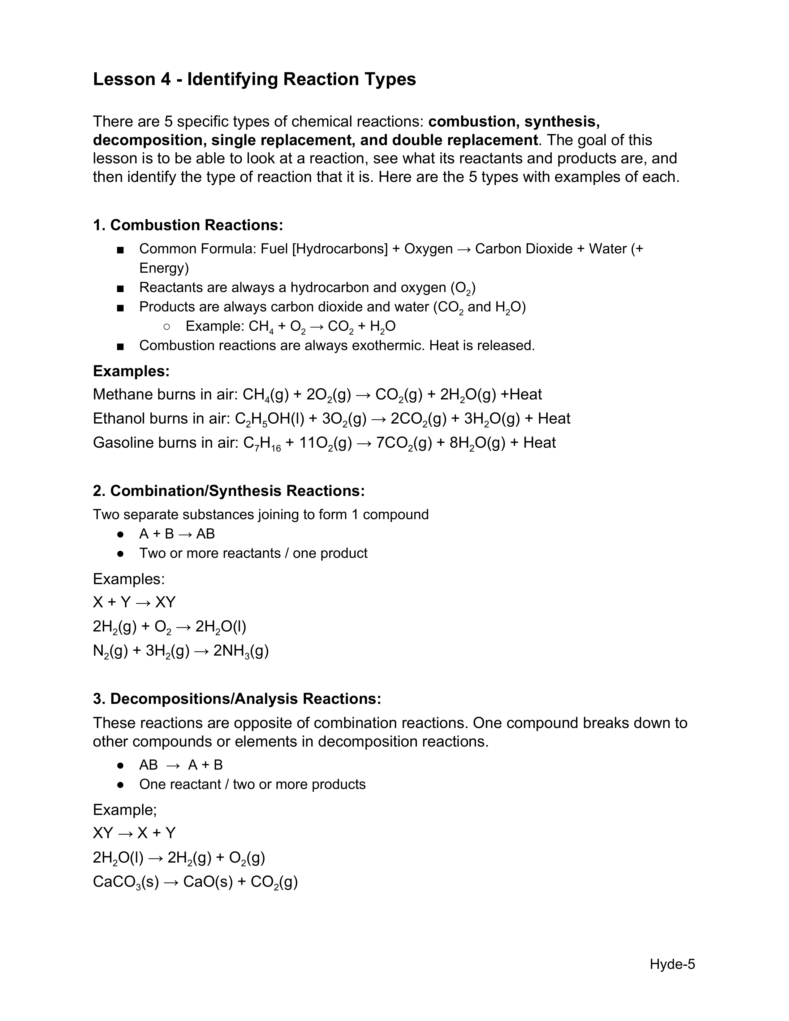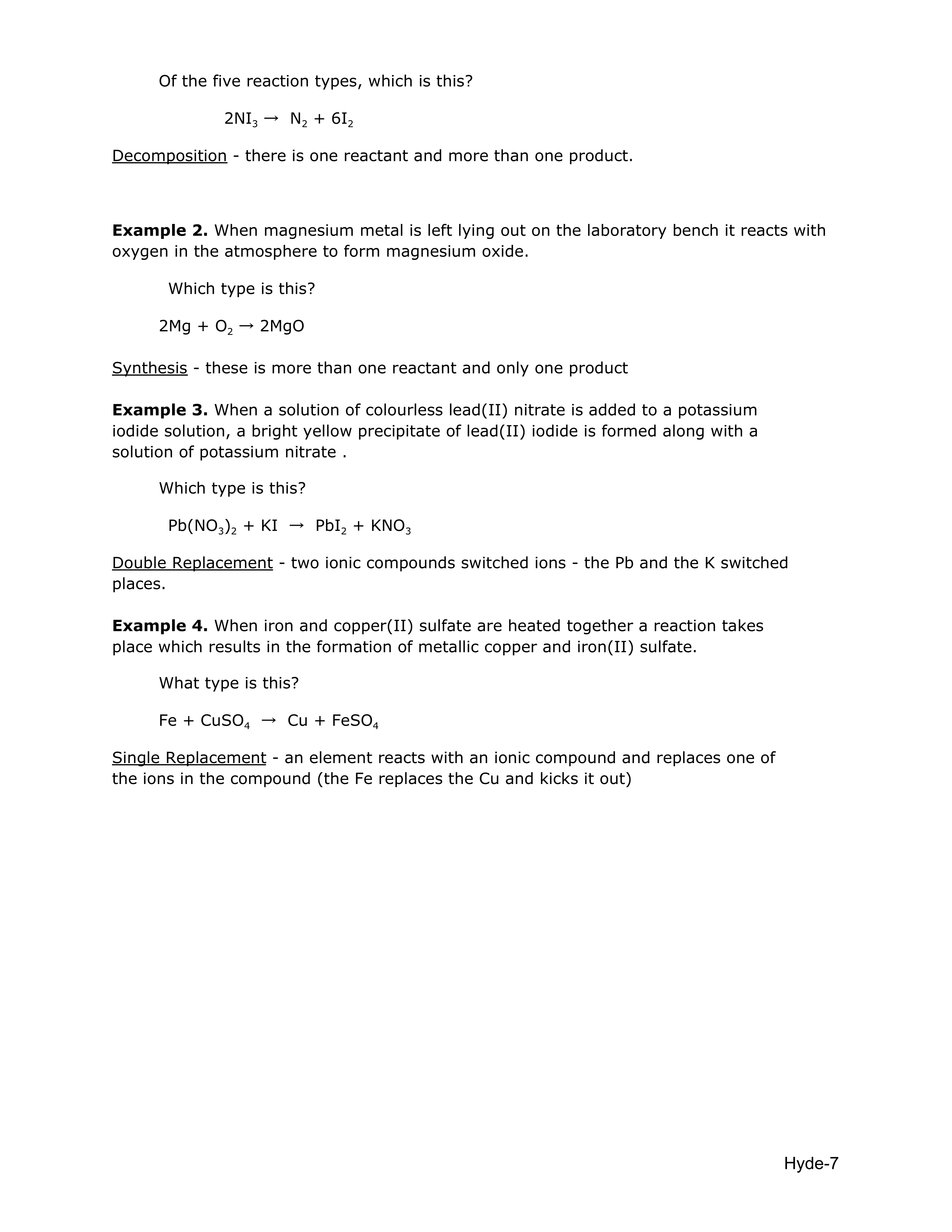 Kelso High-Chem H-Reaction types