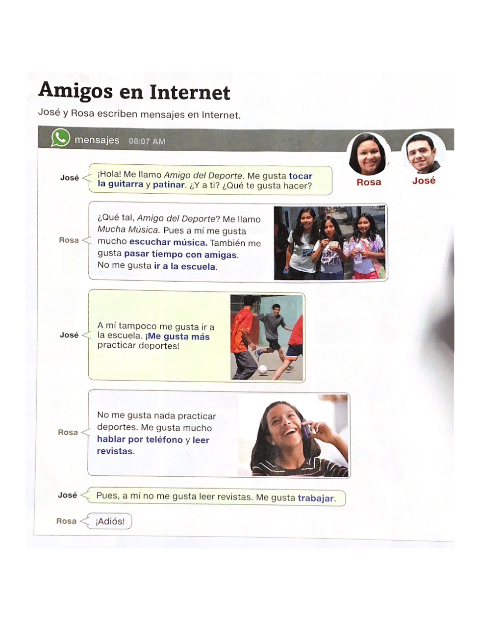 Using what you have just listened to and read as a model, write a short description of yourself. Mention 3 things you like and 2 things you don't like. Use the words: Me llamo / Me Gusta / No Me gusta / mucho / un poco / para nada / también / y / o / ni ... ni