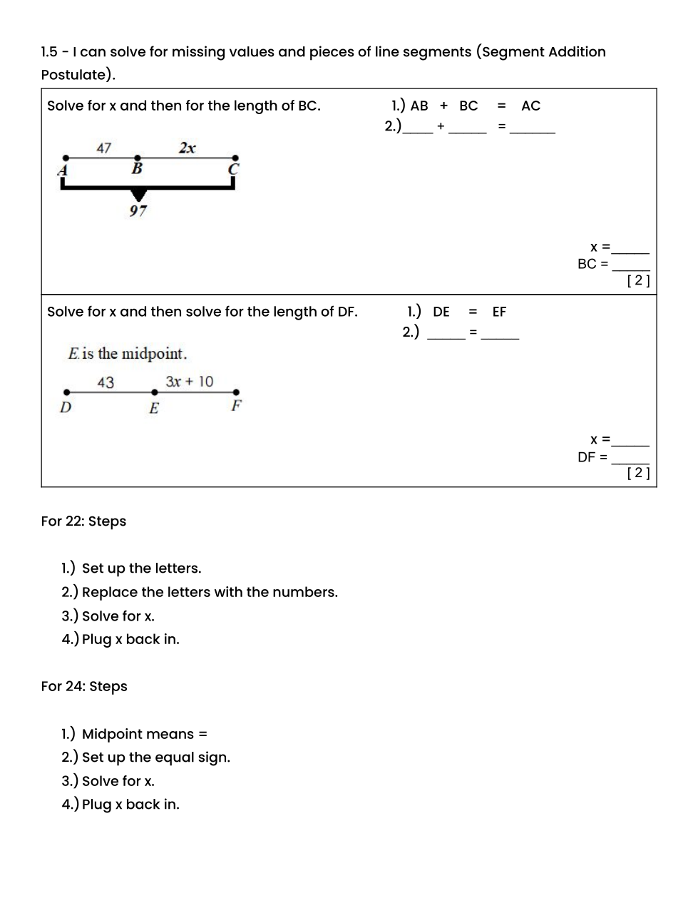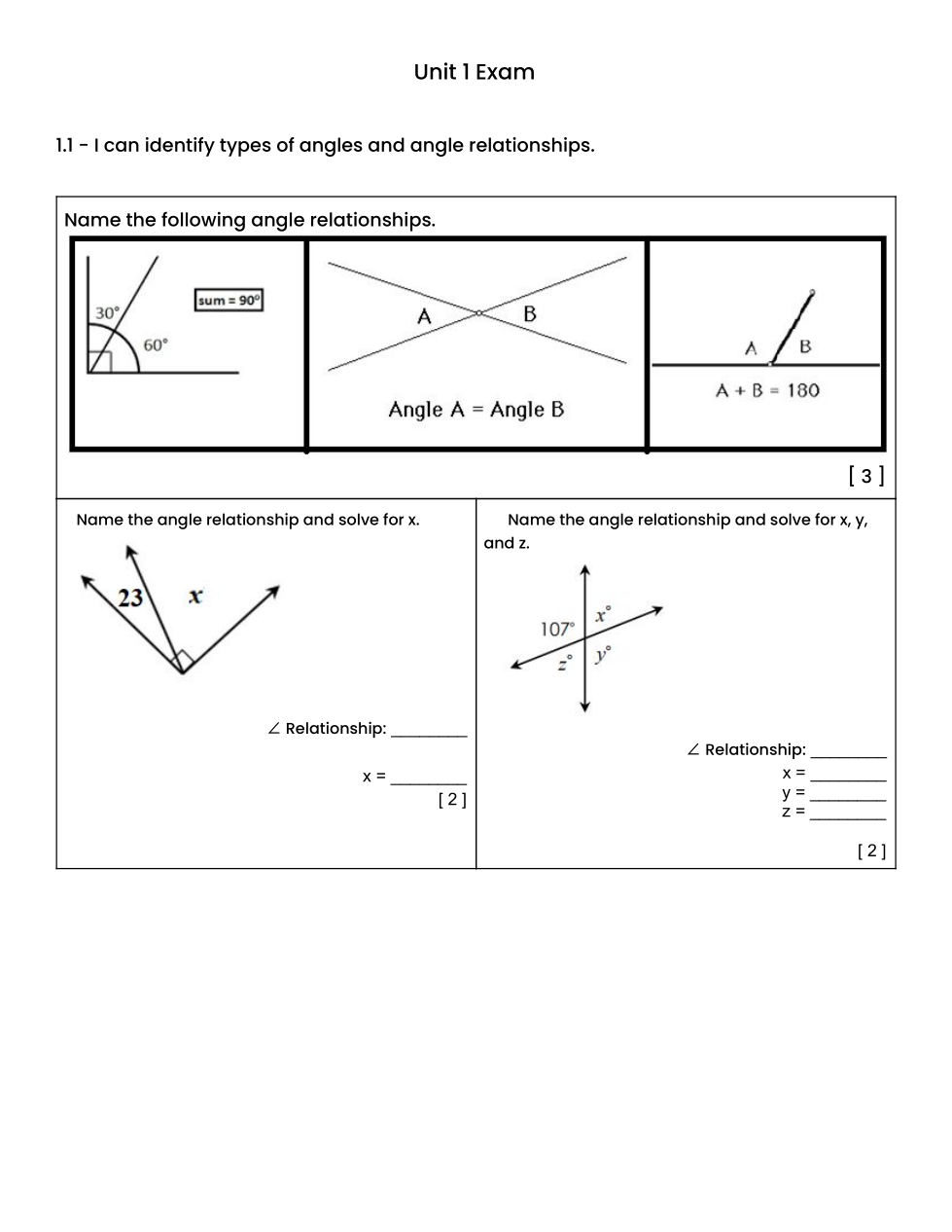 Angle relationships, parallel and perpendicular lines, segment addition.