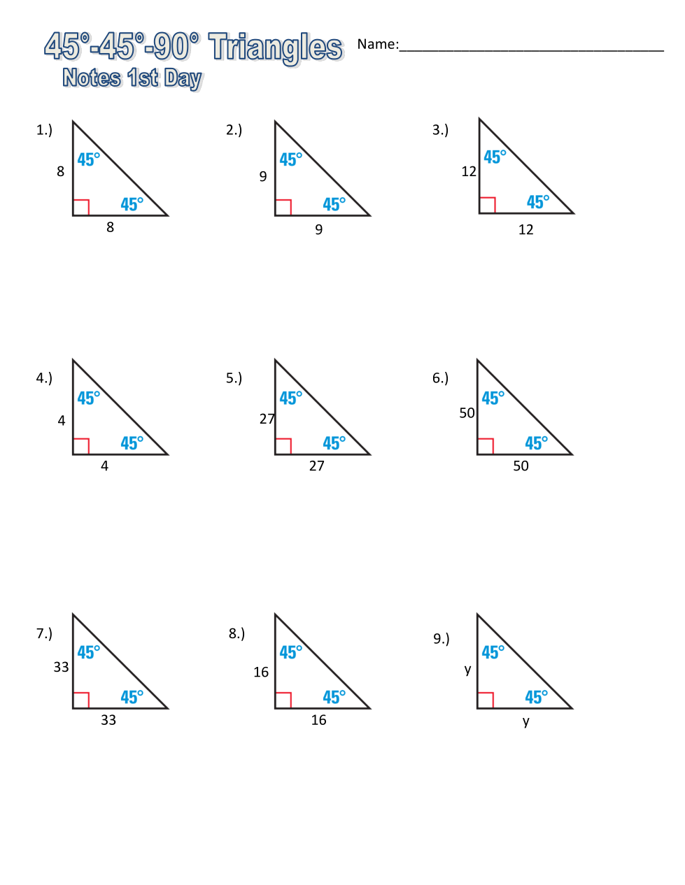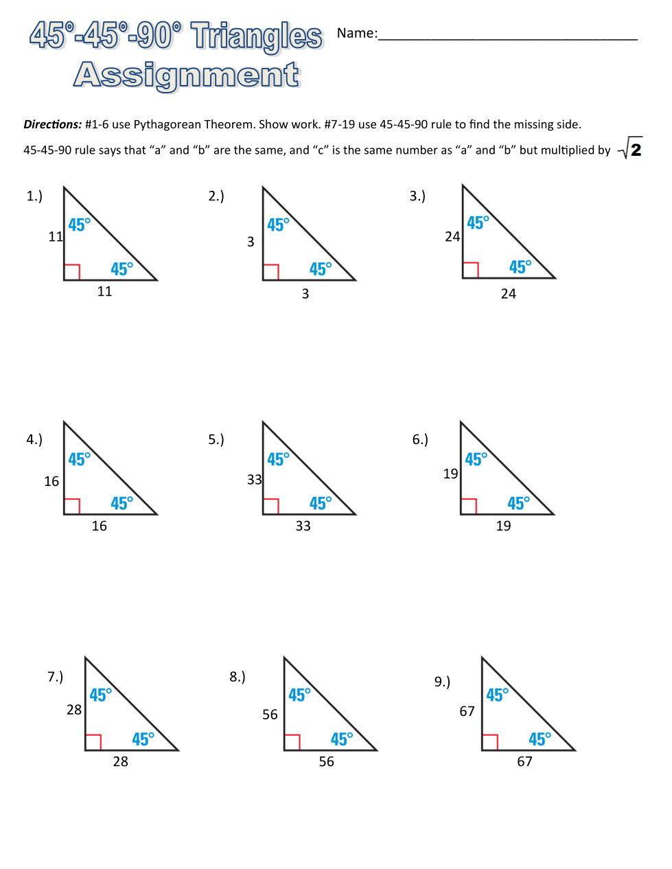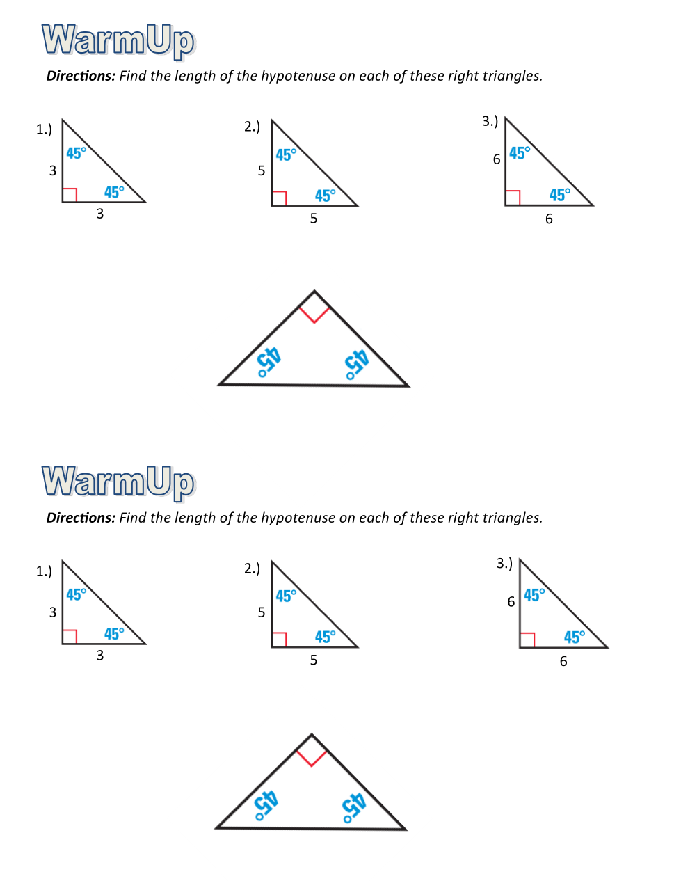 Pay attention that the number on this one is on the hypotenuse instead of on the legs like all the other ones you have done so far.