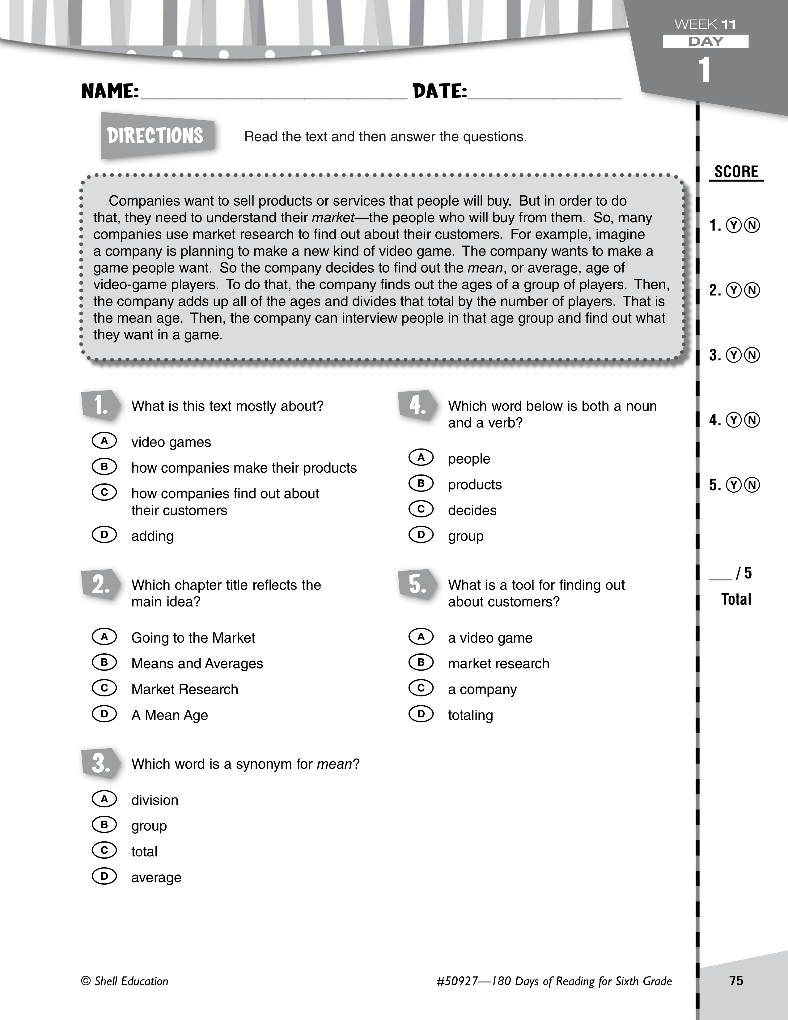 Daily Warm Up Week 11, Day 1