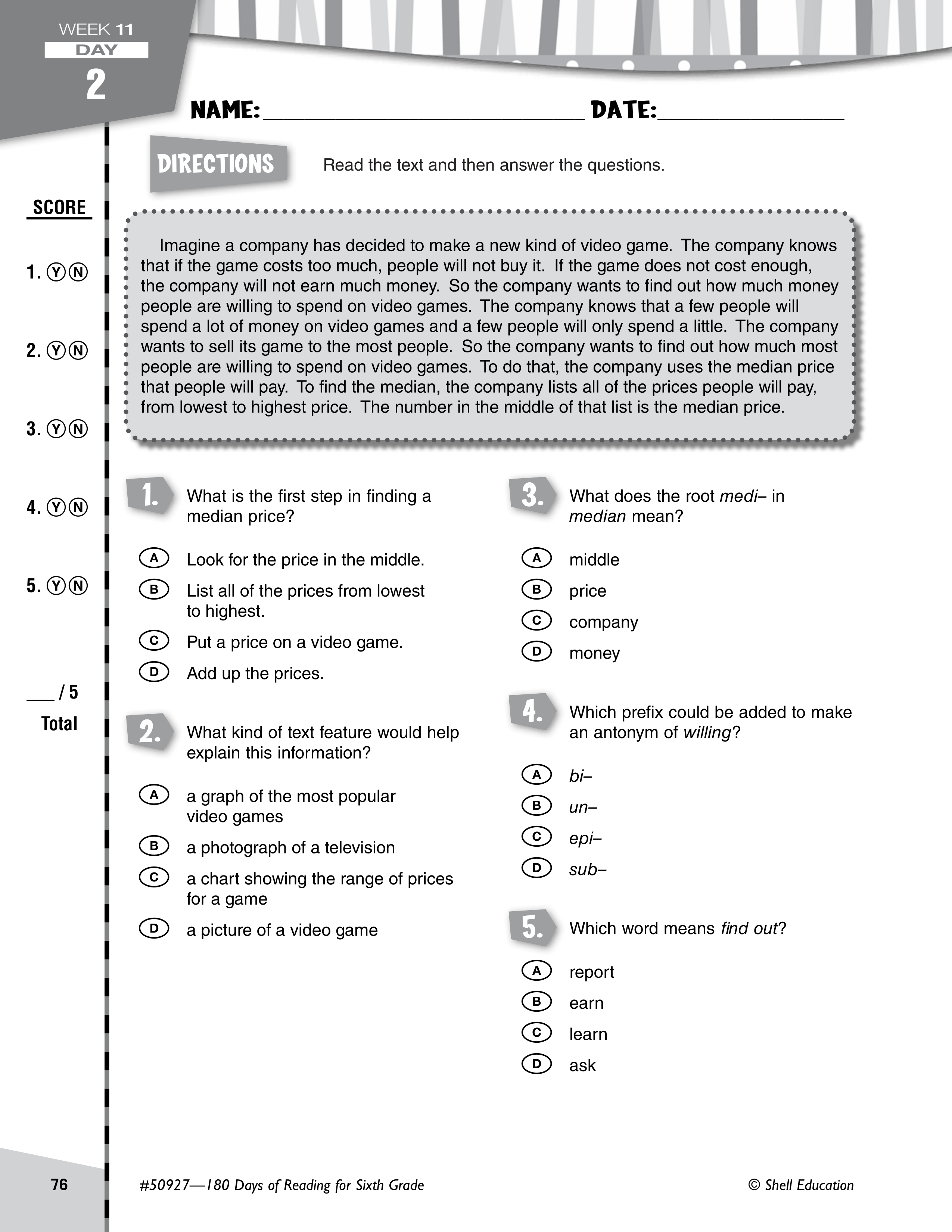 Daily Warm Up Week 11, Day 2