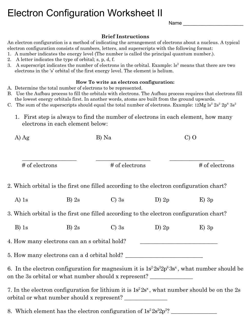 Electron Configuration Worksheet II