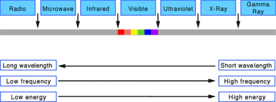Place the colors in the continous spectrum in order from the shortest wavelength to the longest wavelength.