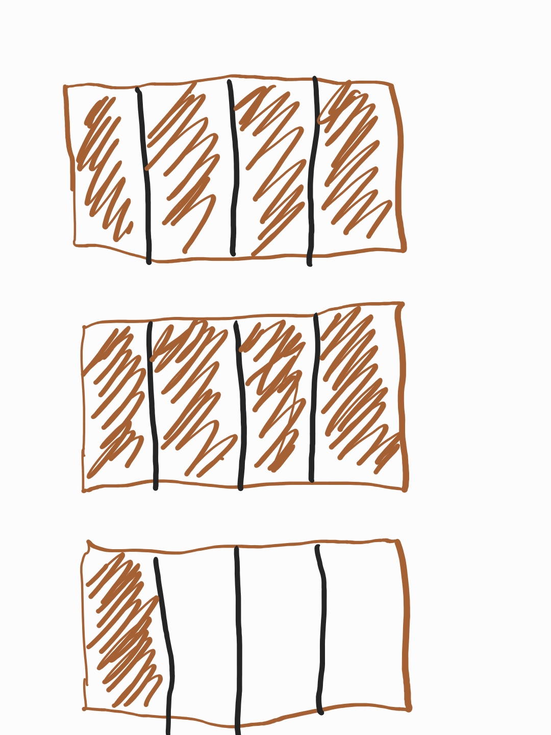 9/12 is one way to write how much of the 3 kit kat bars below were eaten (shaded).