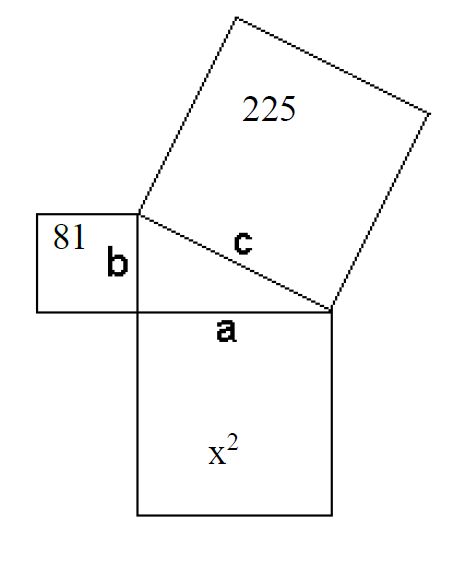 The area of square b is 81. The area of square c is 225.