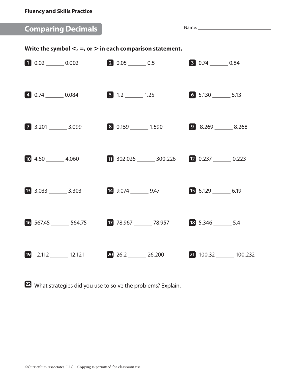 Comparing Decimals, Lesson 9, Session 2