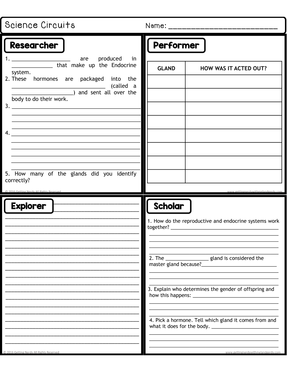 Answer Sheet for Reproductive Stations