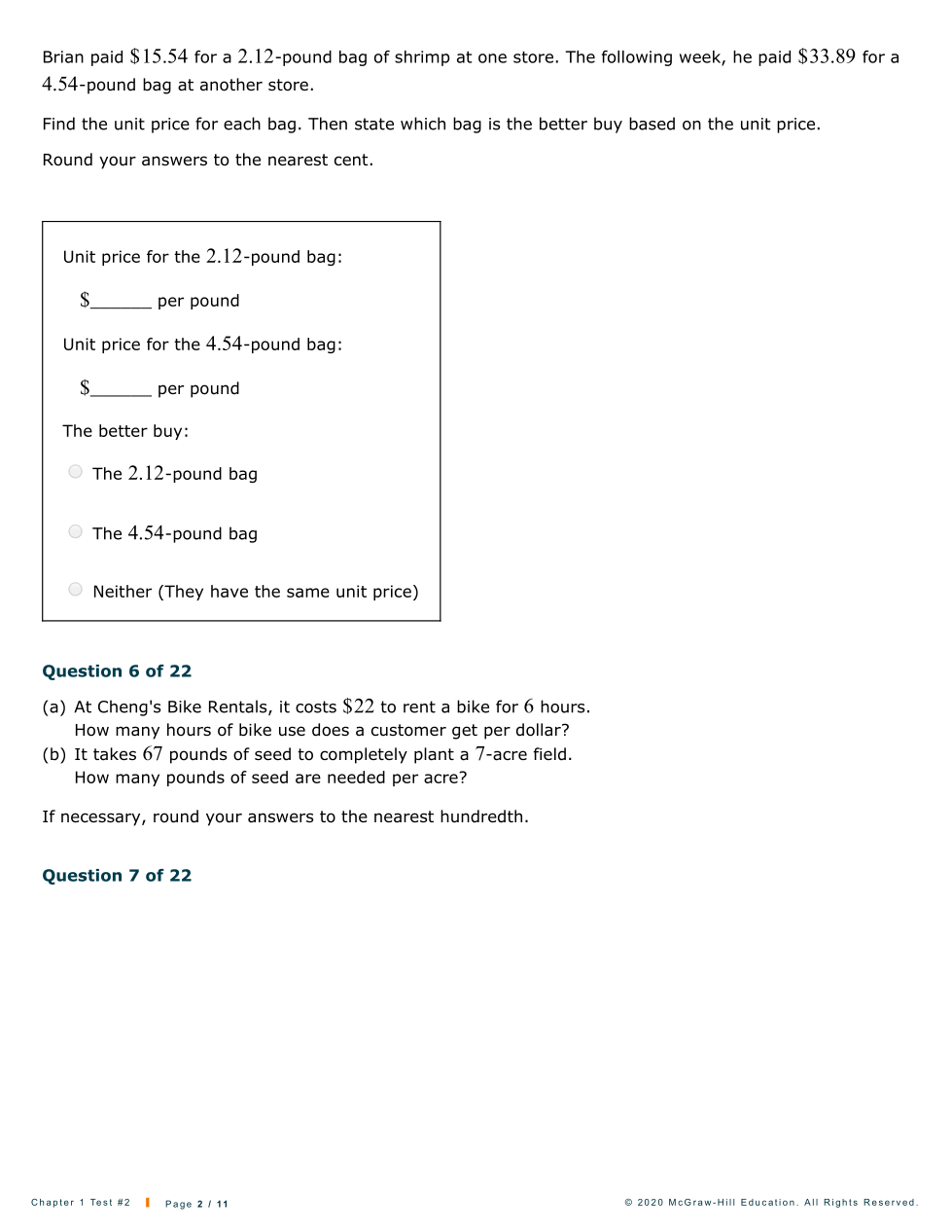 The unit price for the 2.12 pound bag is $_____ per pound (you only need to enter numbers)