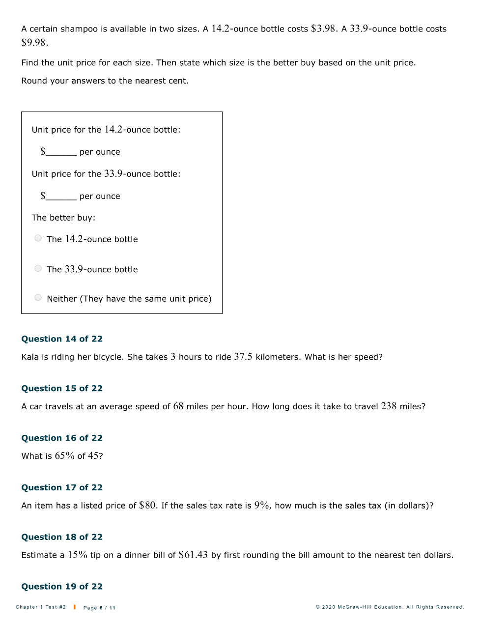 The unit price for the 14.2 ounce bottle is: $_________ per ounce.