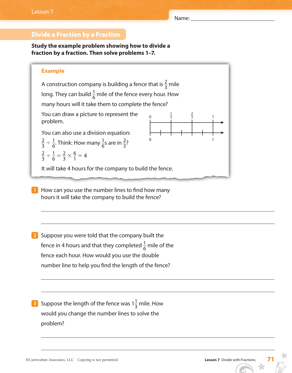 How can you use the number lines to find how many hours it will take the company to build the fence?