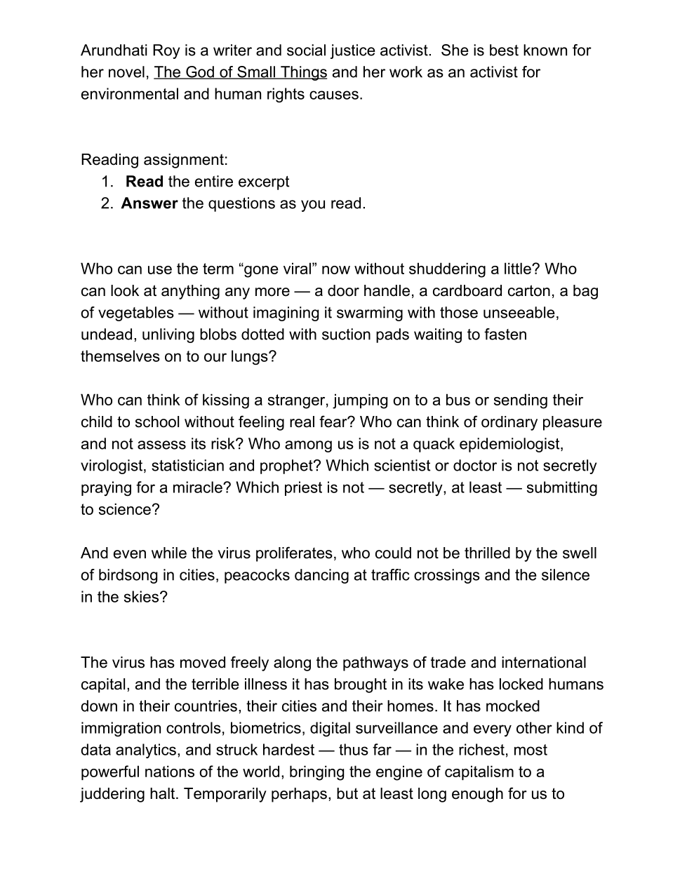 Roy is using personification in this section of her essay. Which of these are examples of personification? Mark all examples.