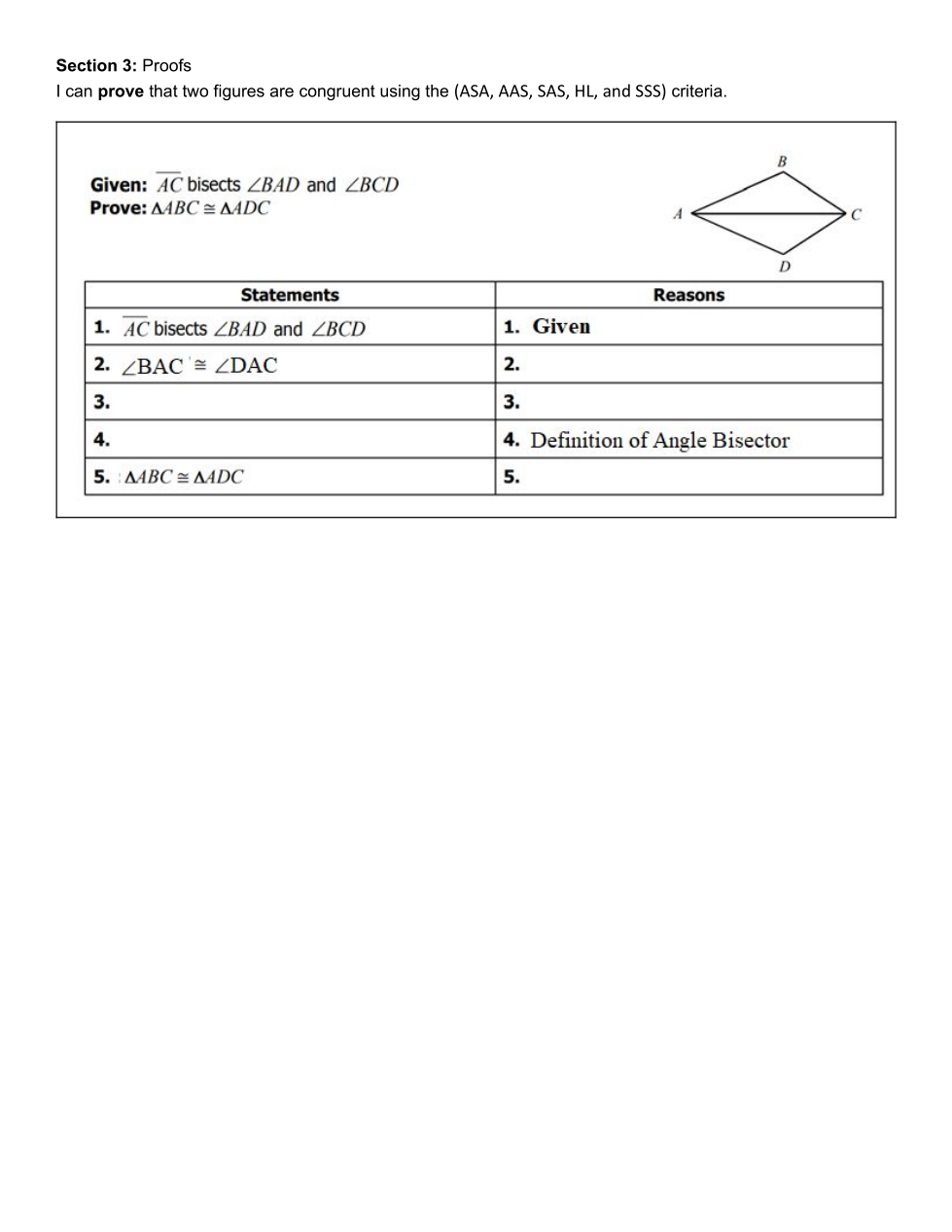 Triangle ABC is congruent to Triangle ADC because of...