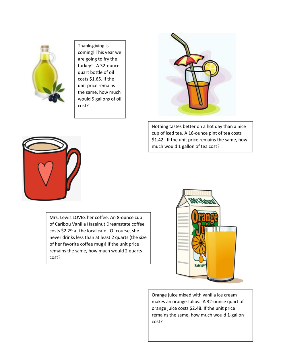 Mrs. Lewis LOVES her coffee. An 8-ounce cup of Caribou Vanilla Hazelnut Dreamstate coffee costs $2.29 at the local cafe. Of course, she never drinks less than at least 2 quarts (the size of her favorite coffee mug)! If the unit price remains the same, how much would 2 quarts cost?
