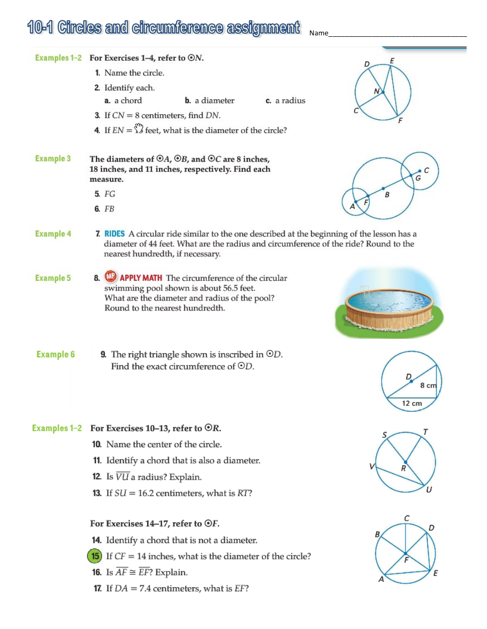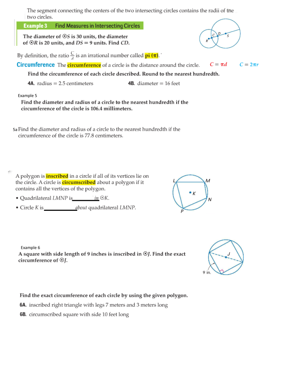 Find the diameter and radius of a circle if a circle has a circumference of 18 in.