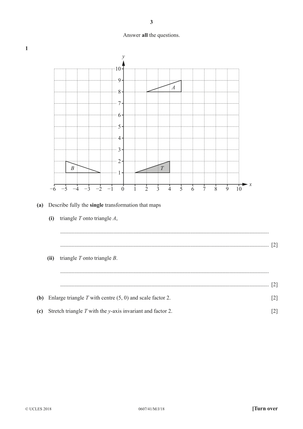 Enlarge triangle T with centre (5, 0) and scale factor 2.