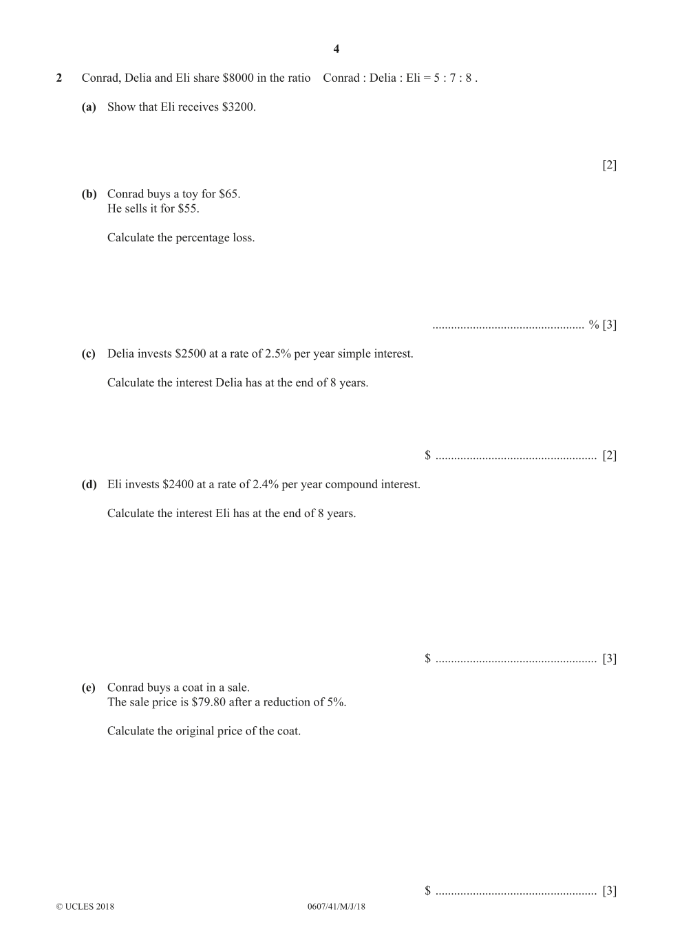 Conrad, Delia and Eli share $8000 in the ratio Conrad : Delia : Eli = 5 : 7 : 8.Show that Eli receives $3200.