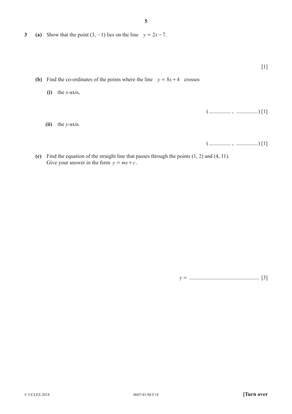 Show that the point (3, -1) lies on the line y = 2x - 7.