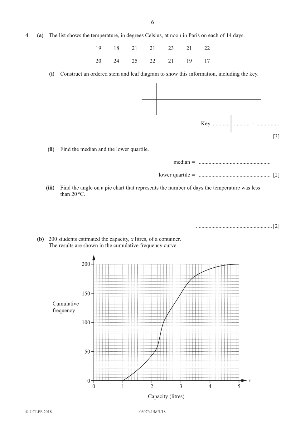 Find the angle on a pie chart that represents the number of days the temperature was less than 20°C.