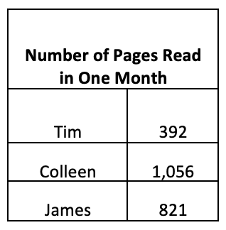 If Tim reads the same number of pages next month, about how many pages will he read in 2 months?