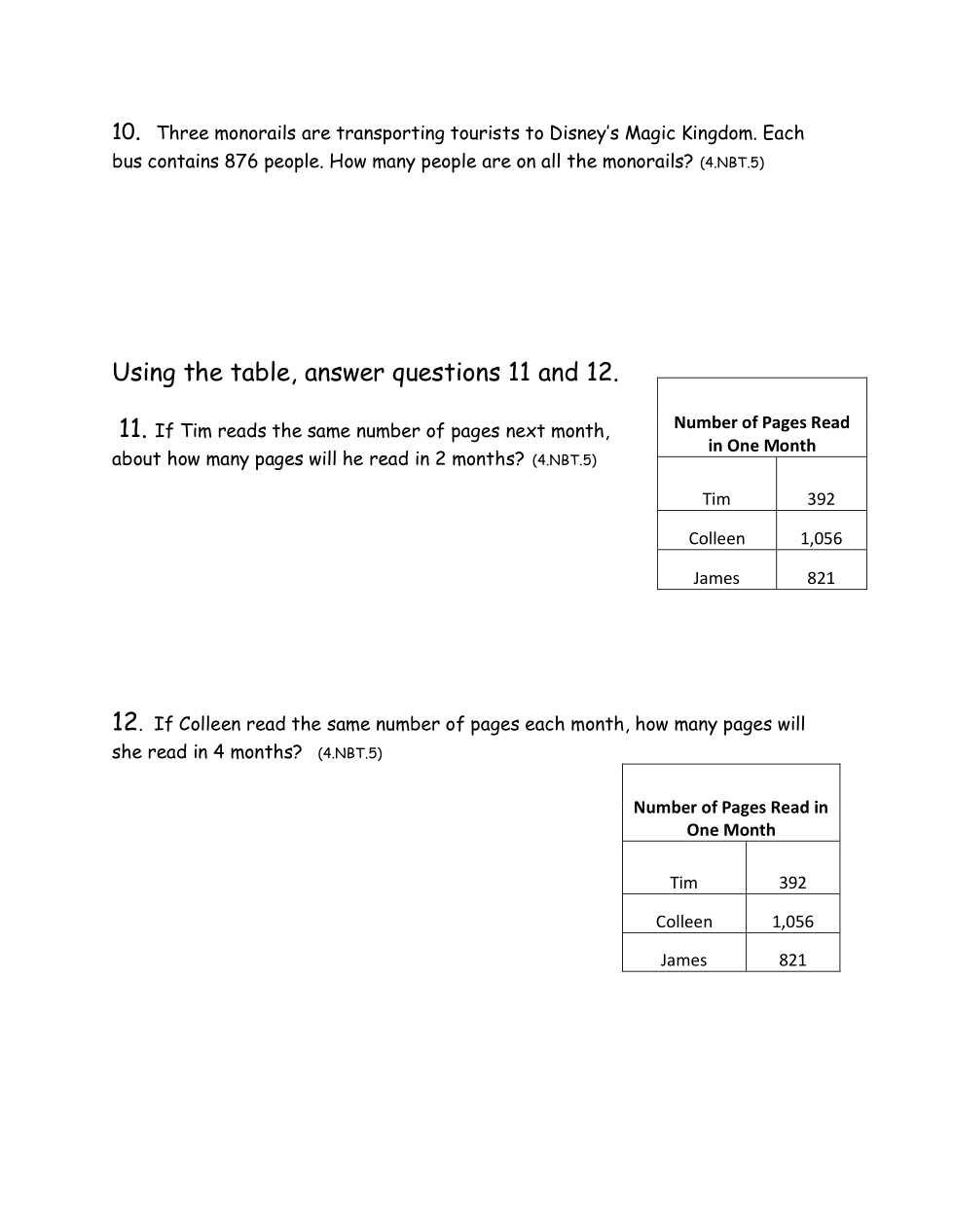 Three monorails are transporting tourists to Disney’s Magic Kingdom. Each bus contains 876 people. How many people are on all the monorails?